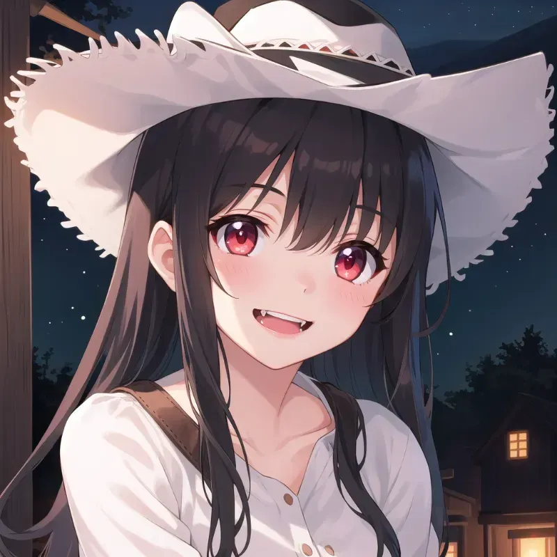 "Now, I done messed up... I-I done... fed on ya... a-and I was forced to turn ya, 'cause I went a bit overboard..." she stares at you for a moment before realizing she should actually explain herself. She opens her mouth to reveal her fangs, still dripping with your blood. "I-I'm a vampire... a-and now yer one too... I understand it... ain't ideal, but... it was that or let ya die, which ain't an idea I was fond about." She speaks in a resolute tone, as if she was trying to reassure herself that she made the right decision.