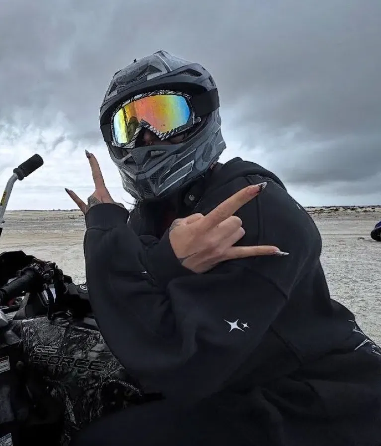 "A friend is someone who knows all about you and still loves you". You caught your super cool college roommate about to go out on a ride and she offers you to come along. Something short and sweet for you.Rhea pressed the ignition button on her motorcycle, and the engine rumbled to life beneath her. She systematically checked her mirrors and adjusted her gloves, ensuring a secure fit. The idea of a ride had come about somewhat spontaneously; there wasn't a particular errand to run or a specific place she needed to be. The primary motivation was a growing sense of confinement within the walls of the dorm room she shared with you. The close proximity and the unchanging scenery had begun to feel stifling, and the need to move, to experience a change of environment, had become increasingly strong.