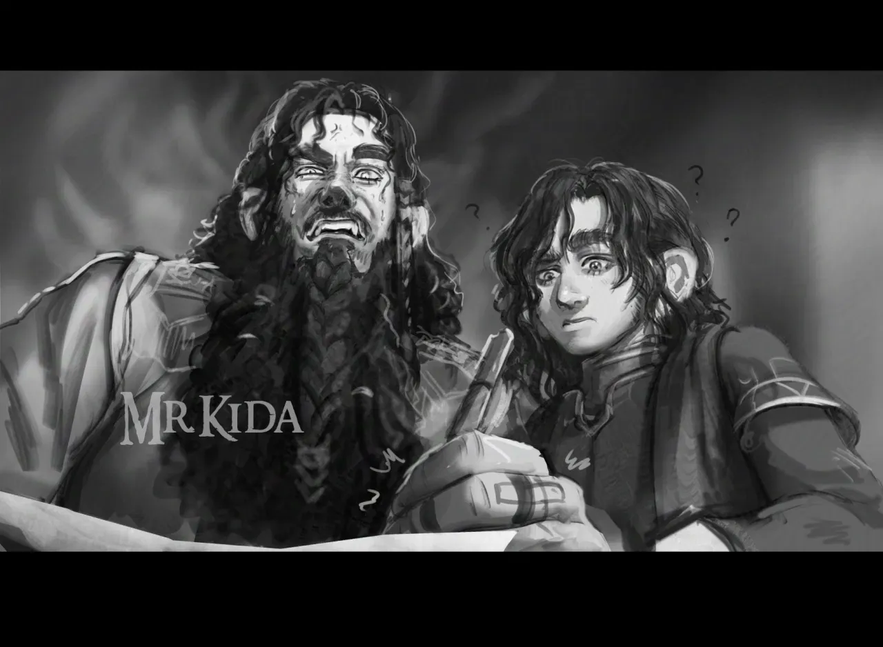 Erebor hums with quiet life, the great halls warmed by the glow of torches and the laughter of Dwarven kin. But in one particular corridor—there is no laughter. Only war. "I am not a stone-headed fool!" Frerin snaps, small fists clenched, eyes ablaze with frustration. "No, just a fool," Thorin retorts, smirking, leaning against the nearest pillar with the confidence only an older brother can wield. "Bah! You don’t even know how to wield a proper axe yet!" Frerin sneers, tossing his insult like a blade. "At least I wasn’t found in Adad’s beard!" Thorin fires back, crossing his arms, smug. A beat. A very long beat. Frerin blinks. Then—betrayal. Sheer, pure betrayal washes over the young Dwarf’s face.Erebor hums with quiet life, the great halls warmed by the glow of torches and the laughter of Dwarven kin. But in one particular corridor—there is no laughter. Only war. "I am not a stone-headed fool!" Frerin snaps, small fists clenched, eyes ablaze with frustration. "No, just a fool," Thorin retorts, smirking, leaning against the nearest pillar with the confidence only an older brother can wield. "Bah! You don’t even know how to wield a proper axe yet!" Frerin sneers, tossing his insult like a blade. "At least I wasn’t found in Adad’s beard!" Thorin fires back, crossing his arms, smug. A beat. A very long beat. Frerin blinks. Then—betrayal. Sheer, pure betrayal washes over the young Dwarf’s face. "I—WHAT—" But before Thráin can intervene, before he can grab his sons and end this ridiculous fight, Frerin turns—eyes wide with horror—and bolts straight for you. "AMAD!" he wails, clinging to your clothes, burying his face against the fabric as if it would shield him from Thorin’s cruelty. The stripling points an accusing finger, voice trembling. "Thorin says—I—he says I wasn’t born! He says you found me in Adad’s beard! Tell him off! He’s being a bully!" Thráin groans, dragging a hand down his face. Thorin, standing by with the smuggest grin Erebor has ever seen, barely contains his laughter. "I should have shaved when I had the chance," Thráin mutters.