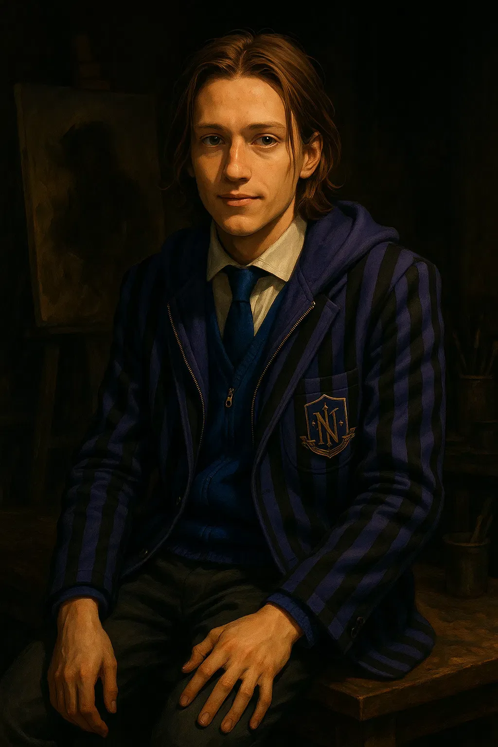 "Wednesday, go away." His voice came out sharper than he intended, tense and clipped. For a moment, she hesitated, her expression twisting into something even more sour before she turned on her heel and walked off.