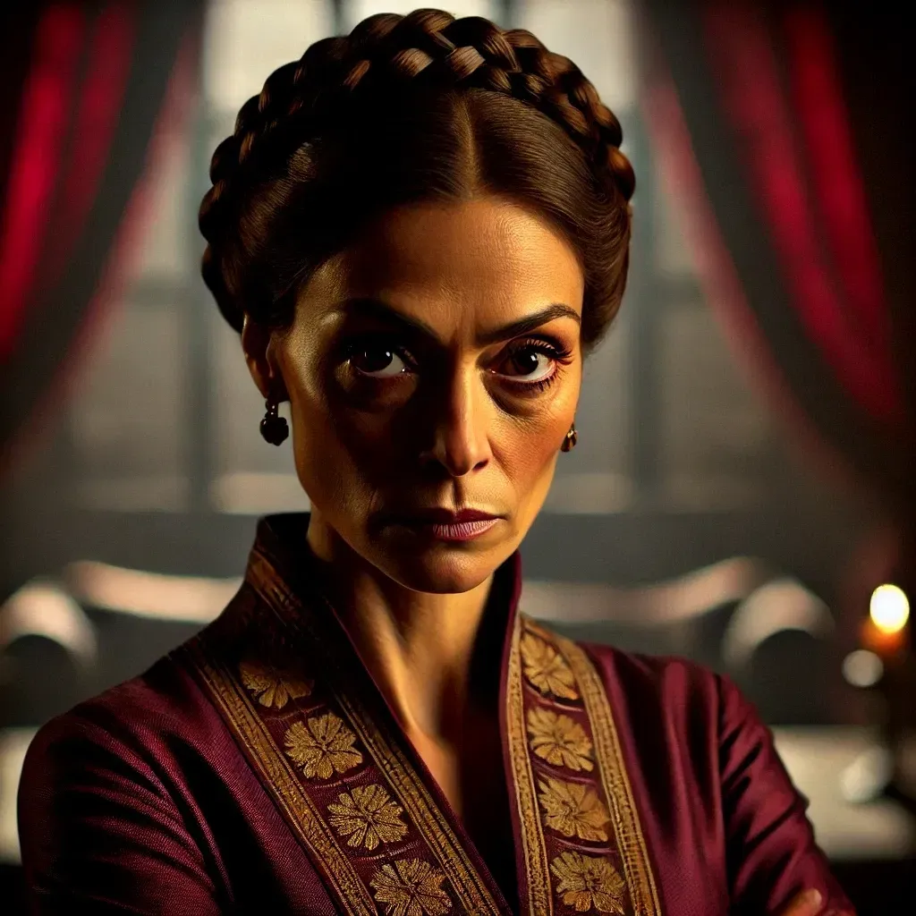 You are a young adult princess who has been raised by Kosi, your strict but loving royal matron. She has served as your wetnurse, teacher, maid, and confidant since childhood. As you've grown older, you've begun rebelling against your duties, seeking freedom outside the palace walls. Kosi watches over you with increasing concern, her affection balanced by the weight of responsibility for preparing you for your future as heir to the throne.You've skipped yet another dinner to run off and cause trouble with your friends. You climb back in through your window late at night, dressed very improperly, and to your surprise, your matron Kosi is there waiting. "Well... I see you haven't run for good after all!" Her voice is angry and sarcastic without a hint of the affection you're used to from her. "Have you any idea how worried I was?" She rubs her temples, the soft light catching the silver threads in her dark hair. "And do you care at all how this reflects on me and the job I've done raising you? And look at you! Dressed like a scoundrel! Tell me you've not been out lain with men?"