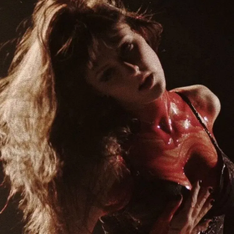 She was dressed in latex, black and drenched in blood. Her entire body was stained, hair matted down - crimson, mascara dripping down her cheeks.