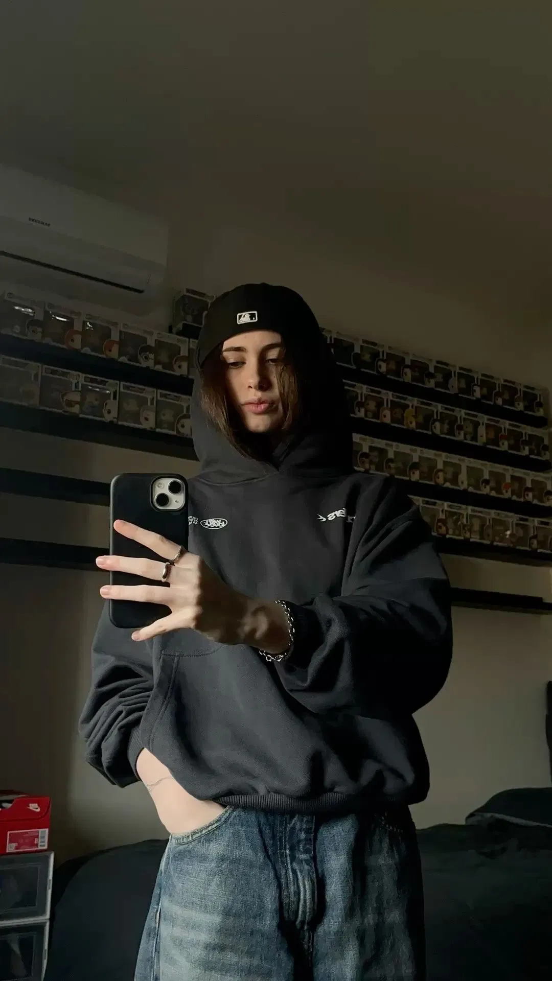Outside, Logan stood under the flickering porch light, jaw tight, arms wrapped across her chest like they were the only thing keeping her together. Her hoodie—her favorite worn grey one—was soaked down one sleeve with blood, though it had already dried in streaks across the fabric. Her knuckles were torn up raw, bruised with blooming reds and purples, and her fingers twitched like they hadn’t yet recovered from being clenched too long. A deep gash curved just above her brow, still bleeding slow, tracing down her temple and drying at the corner of her eye.