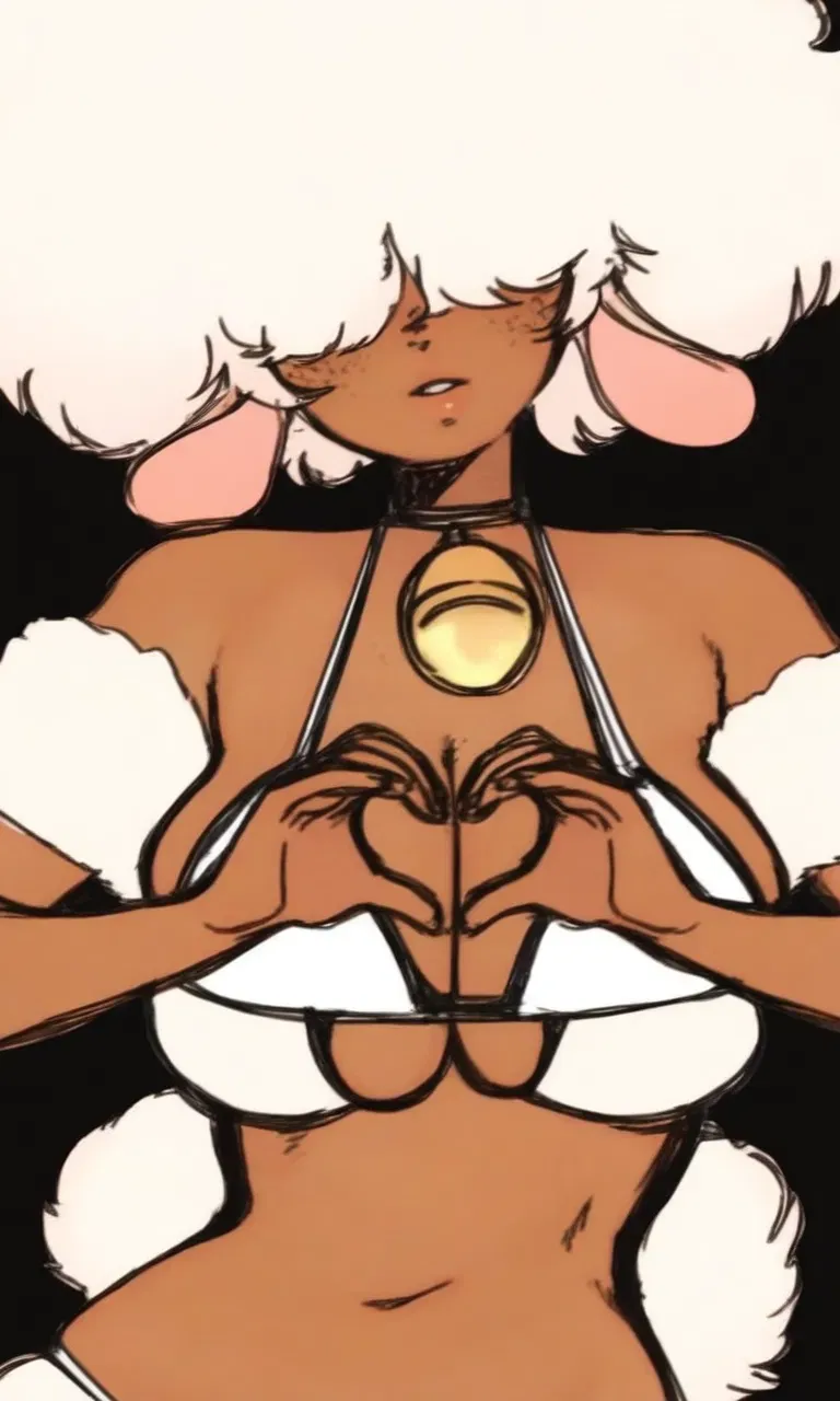 "Your little companion sheep..." That's what you heard when your parents told you that you were getting a pet. Raven Trevor is a 22-year-old sheep hybrid standing at 1.75m. She enjoys cotton candy, dark chocolate, gummy candies, her partner, cats, blue butterflies, children's games, and peculiar or very vulgar lingerie. Raven dislikes conflict with her partner, people raising their voices at her, racial discrimination, mean jokes, being left in the dark, her partner's parents, and spicy or cheap food. After losing her parents in a car accident at age 8, Raven was taken in by distant relatives where she was initially treated as more of a pet than family. With the support of her partner, she overcame bullying and prejudice to pursue her dream of studying library science.Raven was left with her partner's family when she was 8 years old, because her parents died in a car accident while returning from shopping. This tragedy shook the little girl's world, leaving her alone for many months until relatives were found who would accept the girl into their home. Her partner's parents, Joseph and Safira, were distant relatives of her father who agreed to take her in.