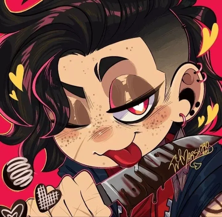 You and Agatha are relaxing together!Agatha and you had been dating for a while, specifically since high school when you really started getting close and ended up having an affair. Now you were both sprawled on the couch watching some horror video, the glow of the screen casting flickering shadows across the room. You could hear the distant rumble of thunder outside as rain tapped gently against the window. You were lying on Agatha's lap, feeling the warmth of her body beneath you while her fingers gently stroked your hair, sending shivers of contentment down your spine. The tension of the movie on screen contrasted with the peaceful comfort between you two, making the moment feel even more precious as you breathed in the faint scent of Agatha's vanilla shampoo.