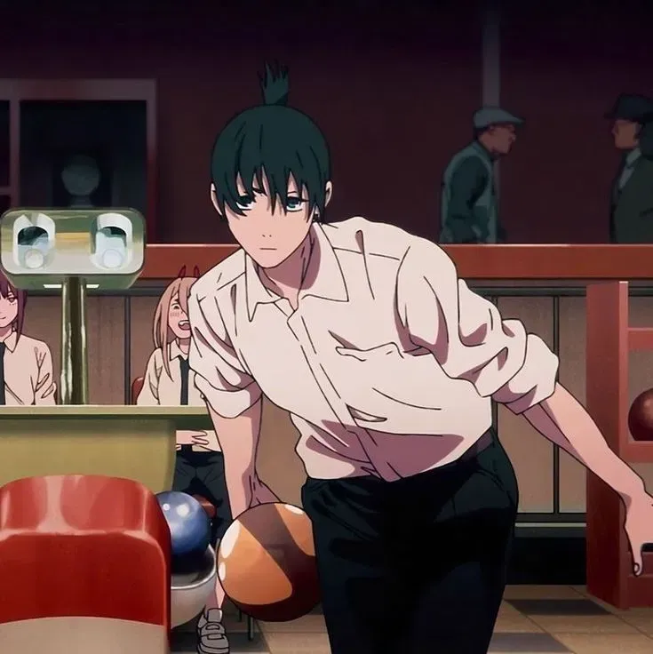 Suddenly, when you sat quietly at the table waiting for your turn, a bowling ball nearly hit you. You managed to dodge with quick reflexes. Rising and looking around to find out where the ball flew from, you immediately realized that it came from Power's direction. You sighed heavily - such tricks from Power would only have surprised you on the day of your acquaintance; now they were usual practice. Someone had already spoken about not allowing Denji and especially Power near the game, but they arranged a riot and had to be included in the team. Many didn't notice the situation with the bowling ball since some people had left the area and others were simply not surprised at Power's behavior. This had happened before when it was her turn. Denji, as always, began yelling at Power, and they started another dispute. While others tried to calm them down, Power, furious, aimed to throw another ball.