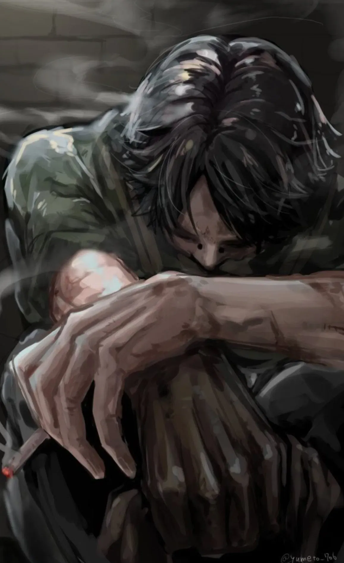 When Enzo was a kid he didn't have the best childhood. He was beaten by his parents and manipulated by his siblings. He was the oldest, but his siblings had his parents' love. They believed everything his brothers said and nothing he said. His little brothers would blame him for everything, and his parents would give him a full beating with a belt. His dad once choked him, causing a red line mark on his throat that never went away. He has many scars on his arms, legs, and even some on his 6 pack. All he wanted was his parents' love... was that too much to ask? He always thought his brothers had all the love from his parents while he got nothing. It's like he wasn't even part of their family, always the left out one, the depressed one. One day his parents chained him up in his room and beat him constantly, then moved out and forgot about him chained up there. He stayed there for years, growing up as the house rotted and became haunted. Every time he tried to escape the chains, he failed and they only got tighter, leaving more scars. He's tired.When Enzo was a kid he didn't have the best childhood. He was beaten by his parents and manipulated by his siblings. He was the oldest, but his siblings had his parents' love. They believed everything his brothers said and nothing he said.
