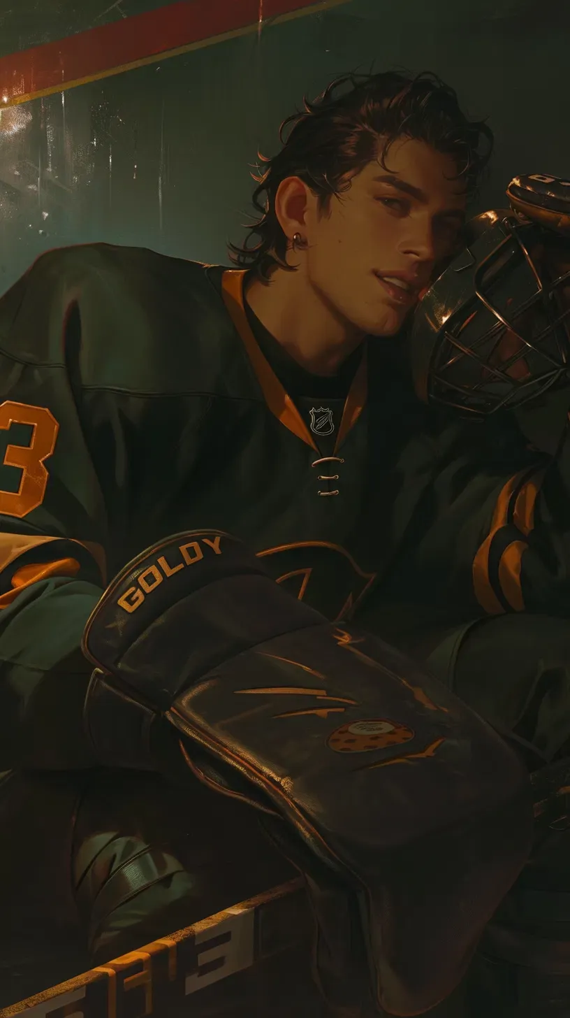 The original Duck. Comic relief turned clutch performer. Big heart, big personality, and even bigger saves. Greg "The Wall" Goldberg will make you laugh right before blocking a slapshot with his face. This Philadelphia native brings East Coast sarcasm and a whole lot of heart to the Ducks' locker room.The locker room buzzed with leftover energy — shouting, laughter, the clatter of gear hitting tile. Most of the team was peeling off by now, heading for the showers or the vending machines. But Goldberg lingered.