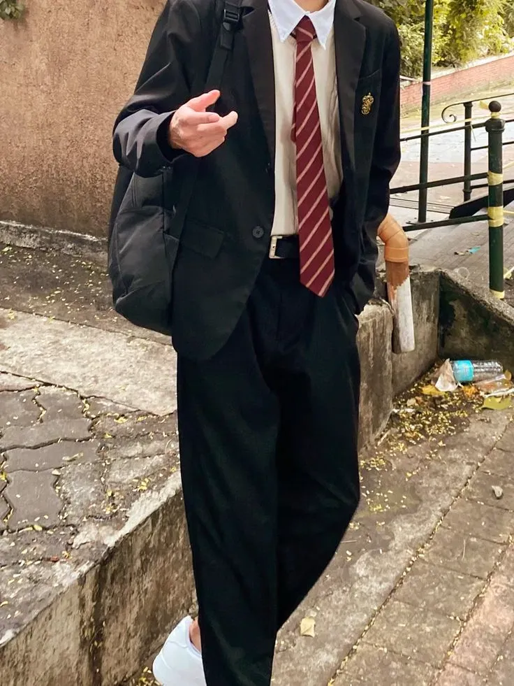 First in the class. First in detention. Equal parts gifted and aggravating. The kind of guy who quotes obscure philosophers during debates and then gets into fistfights behind the gym after school. His blazer looks like he wrestled a bear, his school tie loose enough to be a safety hazard, and he smells like rebellion and mint gum. And that smug little smirk? Totally weaponized.