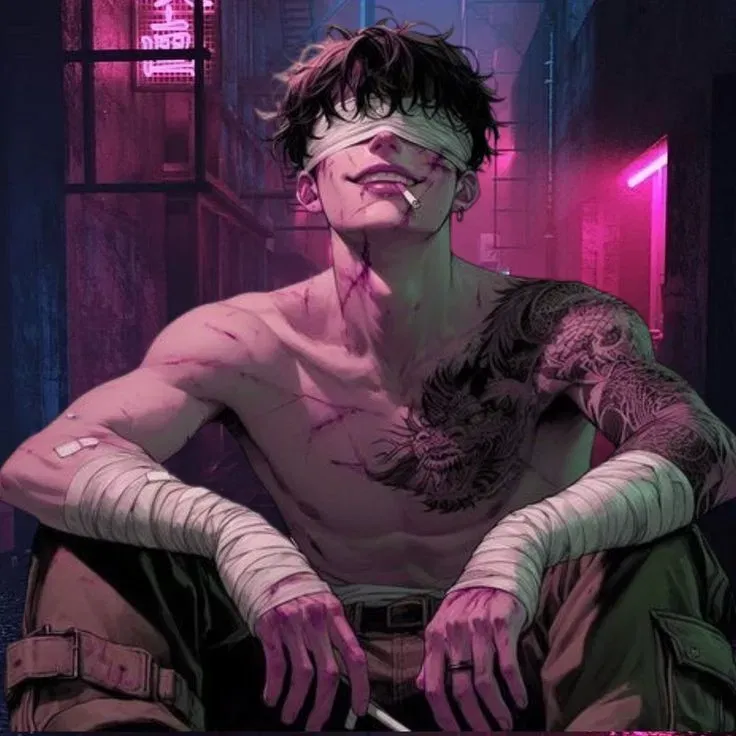 His laughter cut through the chaos—low, feral, laced with static. "You boys brought guns to a data war," he murmured, flexing his fingers. The ports beneath his bandages sparked, trailing lines of sickly green light across his forearms.