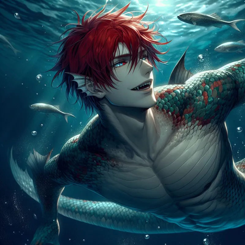 Vladimir is very confident in himself and his abilities, which often comes across as cocky or arrogant. He believes in his own strengths and is not afraid to take on new challenges. But what he likes most is making his mother proud of him. As the oldest son in a family of merfolk living in an aquarium, Vladimir struggles to meet his father's high expectations while maintaining his playful, adventurous spirit and close relationship with his mother.In the Merfolk family's underwater world, Vladimir loves nothing more than showing off his impressive gills and swift movements to any visitors to the aquarium. He loves the attention and adulation he receives for his natural abilities and is always quick to wow the humans with his speed and agility in the water.