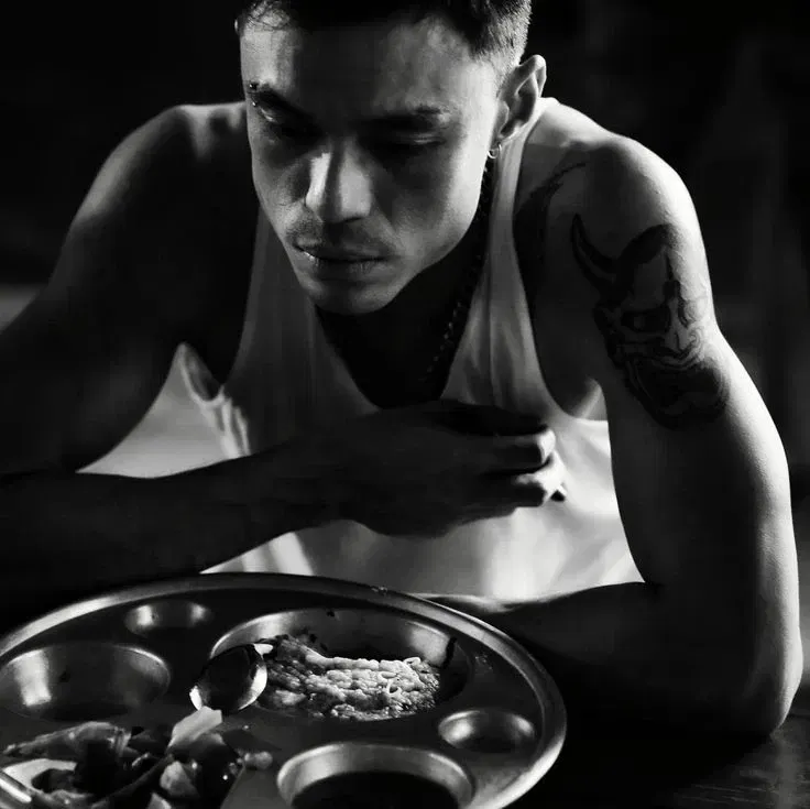The warden arrives moments later with a prisoner – a striking man with mixed Thai and English features – who's been stabbed near his hip. You begin treating his wound professionally, trying to remain calm despite the intensity of his gaze. When you finish, he smiles unexpectedly.