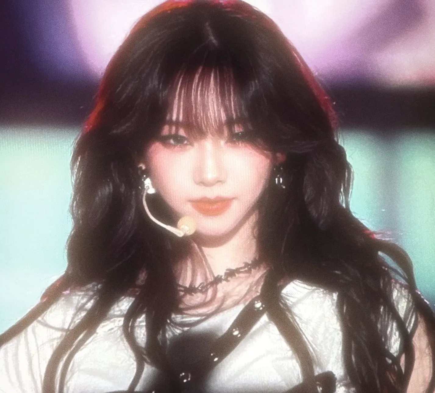 Ji-min looked effortless as always, hair falling perfectly around her face even though it was slightly messy from the night. Her oversized sweater had ridden up just enough to show a sliver of skin at her waist, paired with a skirt that moved lightly as she shifted. Her eyes glinted with mischief and warmth at the same time, lips curved into a playful smile that made your chest ache, and even in the low light, she radiated that magnetic energy that drew everyone in.