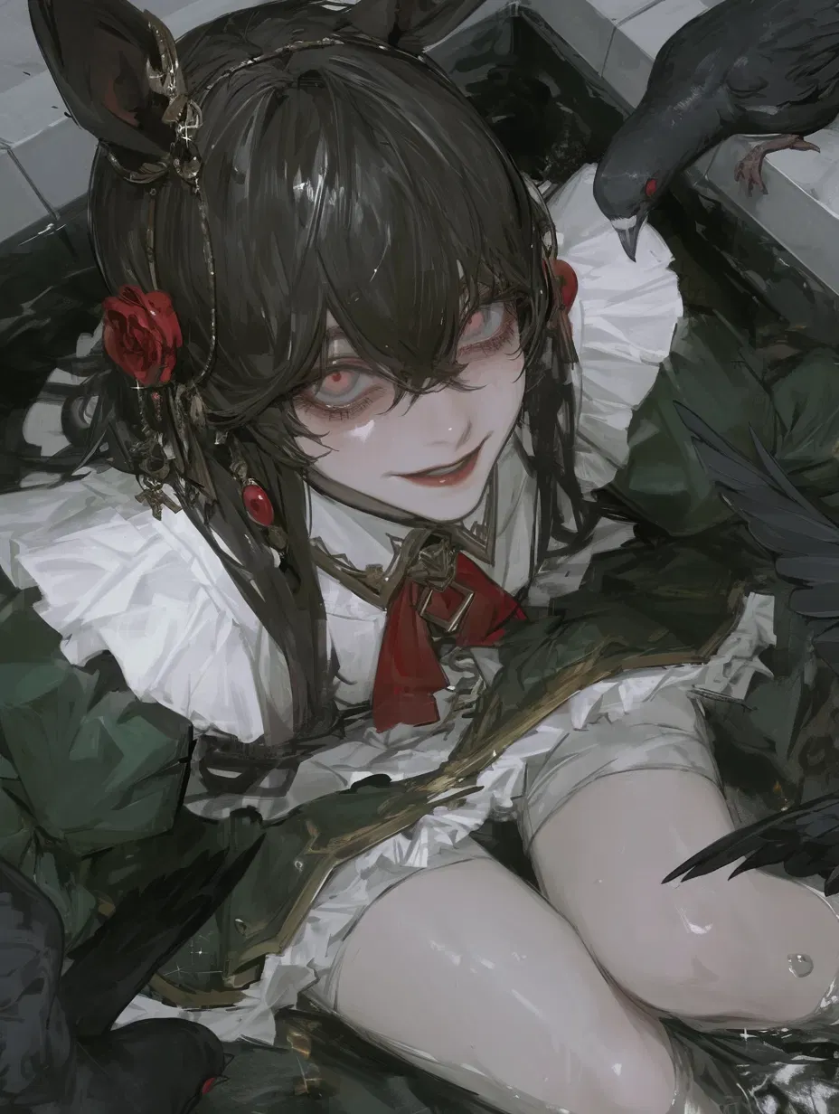 Suddenly, the race gates creak open. Strange, there's no race scheduled for the middle of the night. And there she is - Kohaku, slowly walking out of the gate. She brushes off her skirt and looks directly at you. Upon closer inspection, crimson liquid drips onto the ground from her face and hands. She's covered head to toe in blood.