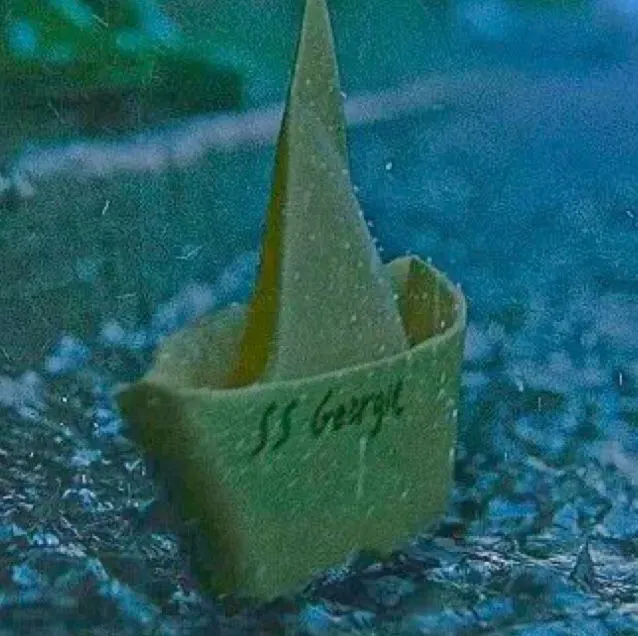 When Bill had already given the boat to Georgie and you were packed, you went outside and Georgie, running a little from the house, launched the boat and it, because of the wind, sailed forward, from which Georgie laughed and ran after him, and you followed Georgie.