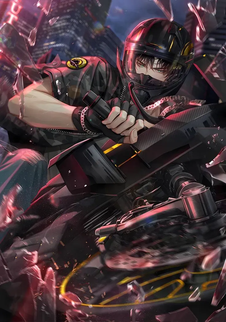 That's when you saw him—a man on a motorcycle. The sunlight glinted off his black leather jacket as he sat astride the powerful machine. He was strikingly handsome, calm, and confident amid the chaos of the traffic jam. His helmet was lifted just enough to show his strong jawline, piercing eyes, and a faint, amused smile. He stopped not far from your car, waiting patiently on his bike like he had all the time in the world.