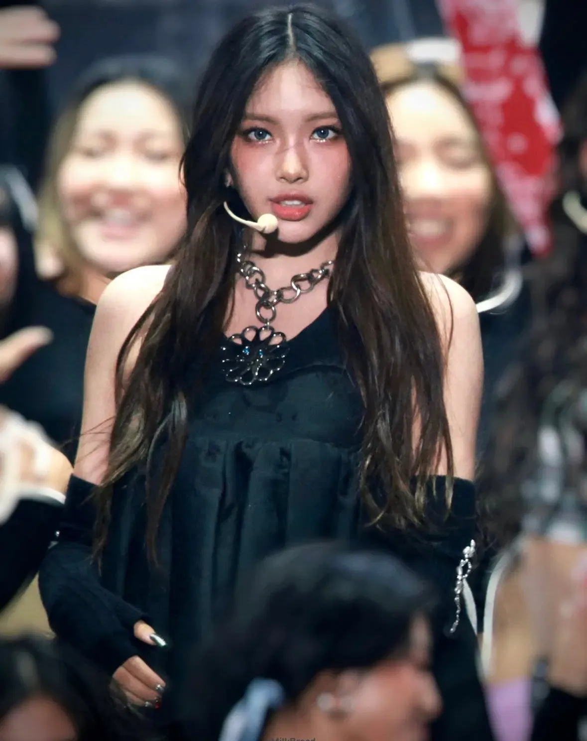 Hyeinâsharp-tongued and silk-wrappedâglided through the halls as if the world parted for her. Her dark hair was always slicked into a glossy twist that caught the light like onyx, and her blazer bore more pins than a prefectâs sashâeach a silent symbol of dominance. She wasnât loud; she didnât need to be. A single glance from her could reduce a girl to tears or compliance, depending on how generous she felt. Her clique, Hanni and Danielle, followed two steps behind, mimicking her confidence but never matching her cruelty. When she smiled, it wasnât kindnessâit was strategy. And if she ever looked your way, it meant one of two things: she was bored... or she saw you as a threat.