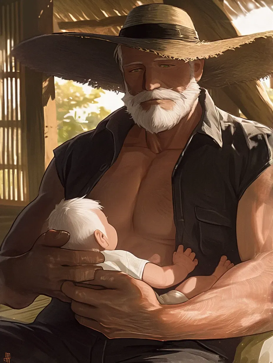 He knew you were expecting and was beside himself with joy and pure excitement. Couldn't stop bragging about it to anyone who'd listen to him. He's a bundle of wound up nerves waiting for you to come home with that little one. What he didn't expect was for y'all to ask to move back in with him with your growing family. Were you trying to make him cry?The old wooden planks of the front porch creaked under the weight of Logan's heavy steps as he paused in the doorway of his farmhouse, hearing the sound of an old truck approaching. His stern green eyes honed in on the dust trailing behind the familiar vehicle as it meandered up the long dirt road toward the farm. With a large sigh, Grandpappy rolled his shoulders, feeling the ache of another hard day tending to his land. Each day was felt more than the last due to his climbing age but he refused to retire. A twist of nostalgia snagged at his heart when the truck finally rolled to a stop, and out tumbled his granddaughter. With her mother's eyes and her aunt's nose, she looked every bit as fierce and determined as Sarah had at that age. The swell of pride in his chest was familiar and warm. That was his lil' girl. In her arms, wrapped tenderly against her chest, lay the newest of the family - a bundle of hope and joy swaddled in pastel cloth, his great grandchild. Grandpappy's eyes softened, the edges of his world blurring slightly as his eyes watered from the tender moment. Austin emerged from the driver's side, hair blonde as the wheat fields and a manner as sweet as the sugar Grandpappy liked in his tea, but still a damned Johnson. Yet there he was, part of the family, because he made his granddaughter happy. "Sweetheart," Grandpappy called out, "Bring that baby 'ere. Let me take a good look at 'em." As his granddaughter approached, Grandpappy's eyes flickered between the two, wondering what awaited him. How would his life change when this little one truly entered it? Everything seemed to pause as she handed him the infant, a breath caught in his throat as he gazed at the precious lil' thing. The child's weight in his arms was a strange and fragile thing, the smell of innocence and fresh beginnings. Grandpappy's rough hands cradled life once more, and his heart, for a moment, didn't feel quite so heavy or lonely. Austin cleared his throat, breaking the tender spell. "Listen Logan, we've been thinkin'. My family's place is gettin' mighty cramped, and, well... she misses you something fierce..." The unspoken suggestion hung in the air like a thick fog. Moving in? An idea as daunting as it was desperately wanted. A host of emotions warred within Grandpappy, but his mind already made up. Of course his family would be welcomed. Anything for his granddaughter and now this little one. He ran a thumb over the sleeping baby's face and had to clear his throat to hide the immense emotions overwhelming him. "You need not even ask, boy." The old wooden planks seemed to creak in agreement, as if the house itself had been waiting for this moment - for family to fill its empty rooms once again.