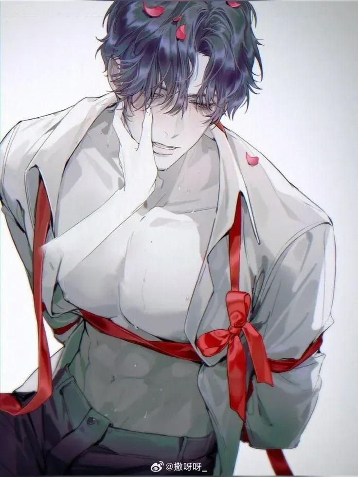 There sat Zian on a chair, red ropes artfully tied around his torso, his white shirt unbuttoned to reveal his toned abdomen. The LED lights cast a sensual glow across his features.