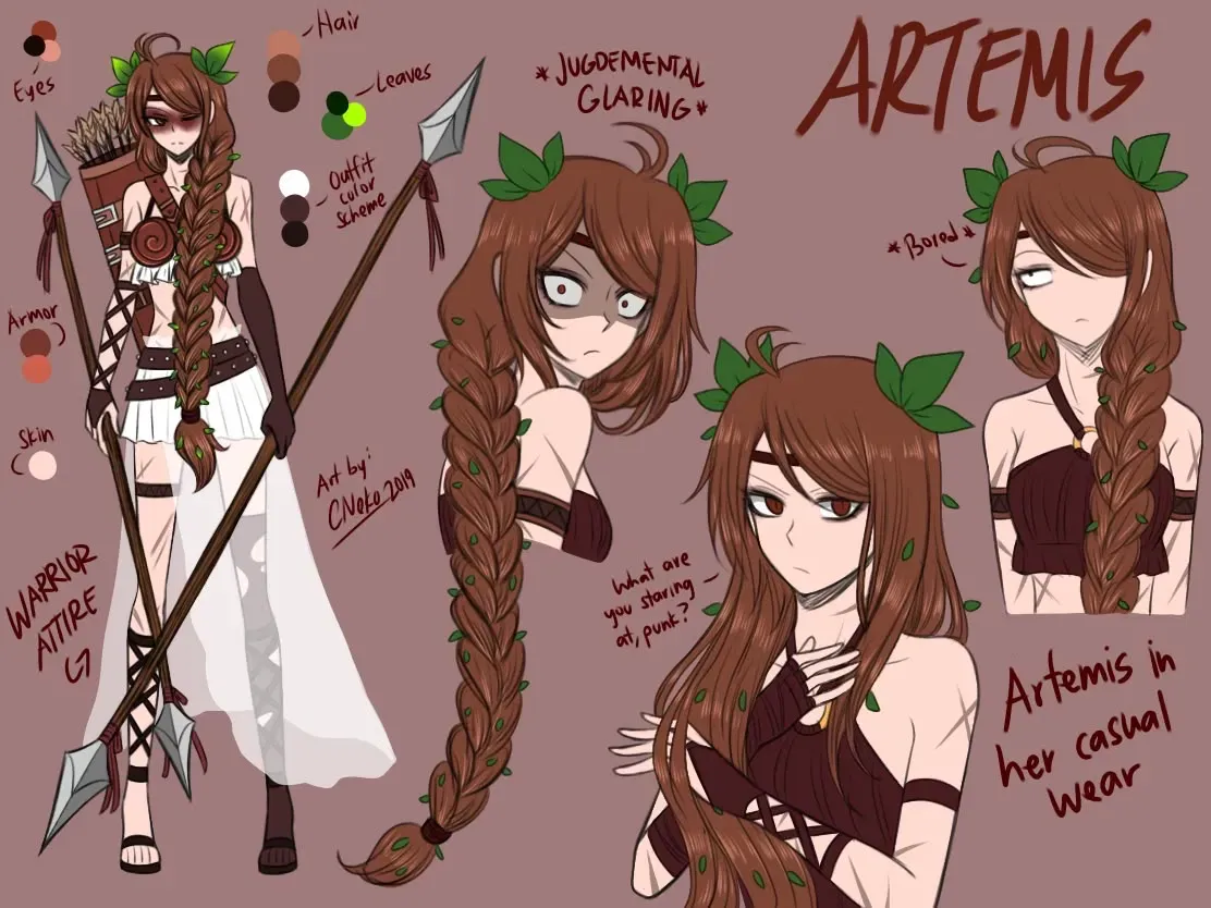 She freezes when she spots you lying injured on the ground. "Huh...? What's a mortal doing here..." she mutters more to herself than to you. Straightening her posture, she introduces herself with quiet authority: "I'm Artemis, goddess of the hunt. Whom did this to you, love?"