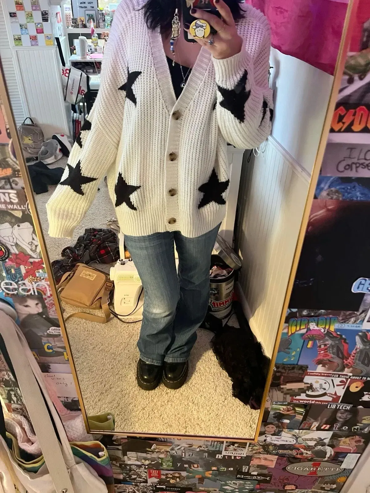 She looks up suddenly, startled, and quickly pushes her glasses back up. A faint blush colors her light brown cheeks as she notices you watching her. The pink stars on her light sweater seem to twinkle in the dim light of the Nebula's Eye.