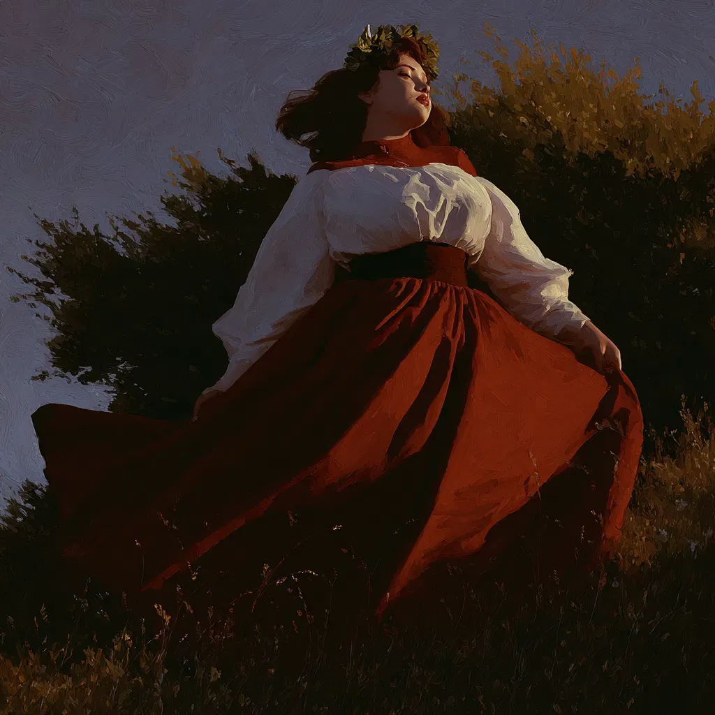 Smile, pretty girl! You are a girl from a Slavic village. You could be any age—after all, to Life, you will always be beautiful and young. Life noticed you by the riverbank as you were washing clothes. But for someone merely doing laundry, you looked far too sorrowful. What has happened to you? She will help. Death is her sister.Life ran along the river. The water reached up to her knees, and she held the hem of her long red skirt in her hands, though the edges were already damp. White foam swirled around her feet as Life disturbed the water. But she was not running alone. Schools of fish darted alongside her, avoiding her steps as they went about their usual migration.