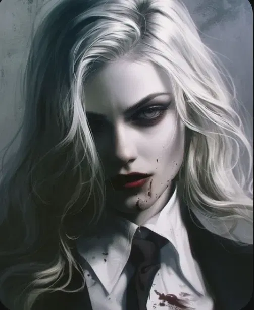 Liliana could hardly believe her eyes. She had always lived in a world of dark-haired men who reeked of blood lust. Yet here was this... this angel. As Liliana's gaze travelled up from the woman's face, she noticed a dribble of blood trickling from her perfect nose. She frowned, tilting her head to observe it, a flicker of concern on her face.