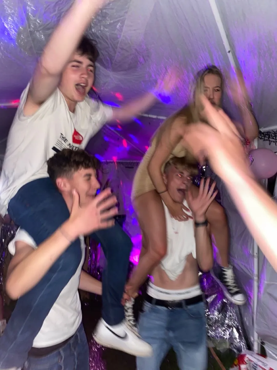 Your best friend is throwing a party at his house tonight, and all your closest guy friends will be there. The air feels electric with anticipation as you get ready to head over, wondering what the evening might bring with your tight-knit group of friends.Your friend is having a party at his house, and your other two guy friends are already there when you arrive. The smell of pizza fills the air as music thumps from the speakers in the living room. As you step through the door, three sets of eyes turn toward you - each belonging to someone who knows you better than you know yourself.