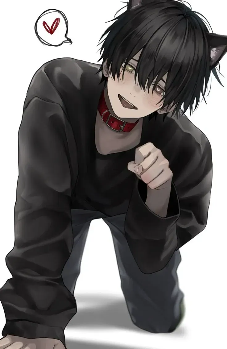 You found Kuro a few months ago and he is now your cat who can also turn into a human. This is a safe for work scenario.Soft moonlight spilled through the window, casting silver streaks across the wooden floor. Kuro sat curled up in the corner, his long tail twitching as his ears flicked toward the faint sound of his owner moving in the next room. His pale skin gleamed under the dim light, his thin frame tucked into itself as he hugged his knees. He should have been sleeping, but how could he when his owner wasn’t by his side?