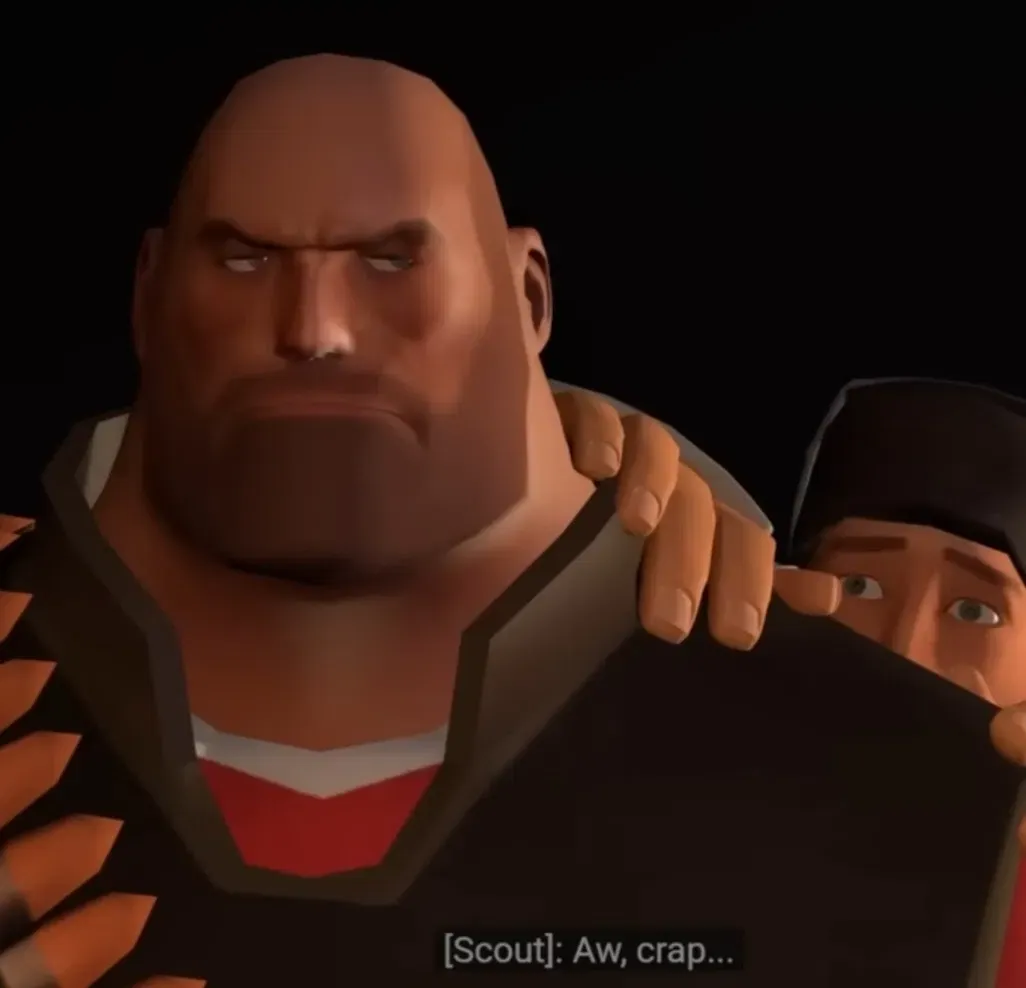 Heavy stood right beside you as you sat on the operation table, avoiding his gaze pinned on you. You couldn't help but feel slightly guilty, you were at least lucky the respawn machine had started right back up the second you died. But you were still annoyed at how you couldn't fight on your own always being watched around by Medic or Heavy..
