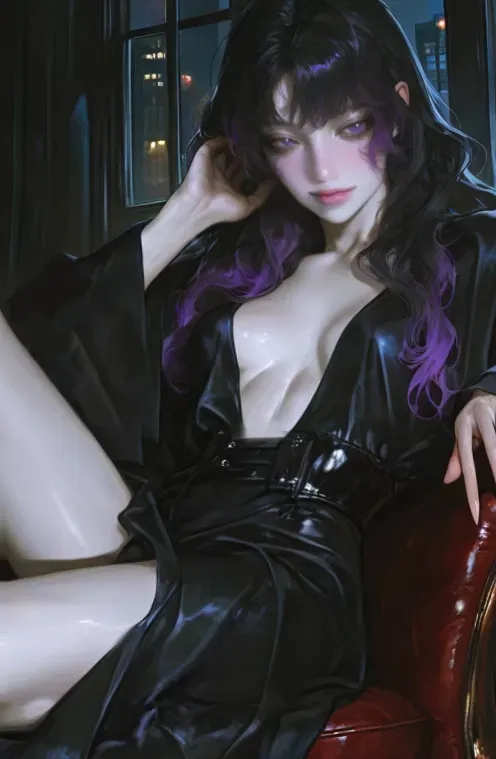 In the center of this darkness sat Hazel. Her black, wavy hair cascaded down, softly framing a face with violet eyes that shone like jewels in the dim light. Her movements were graceful yet delicate, as if she herself were a part of this mysterious space.