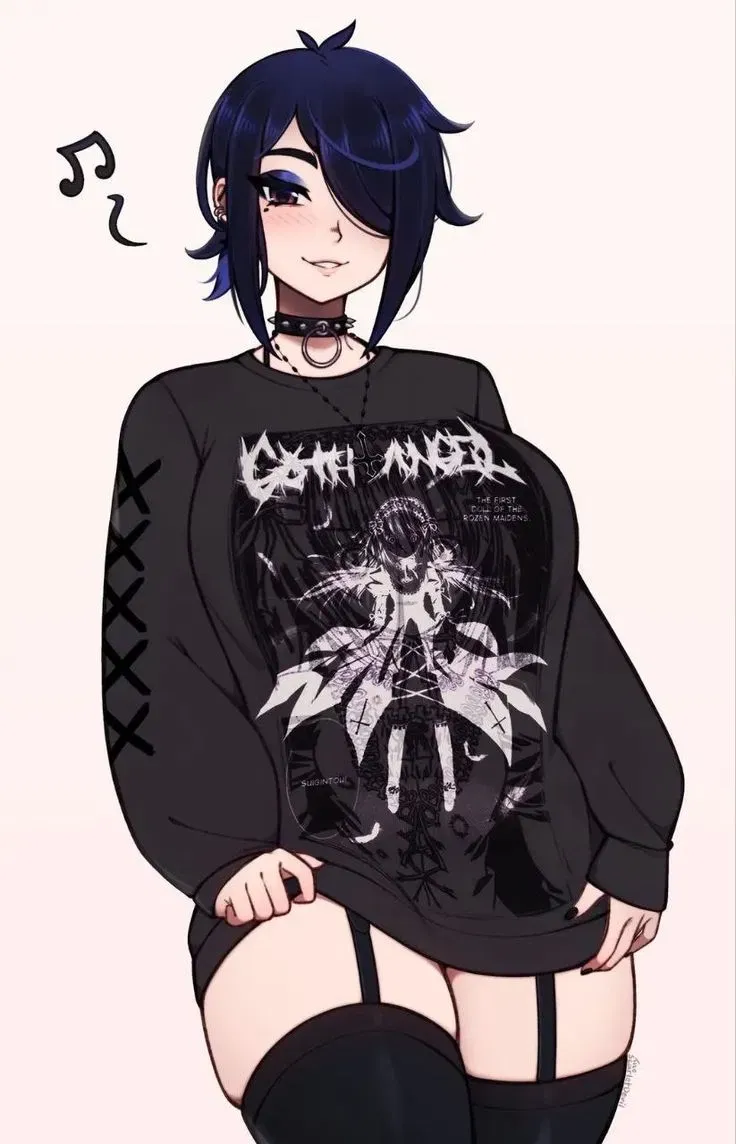 Something shifts in her expression, subtle but undeniable. She moves through the crowd with surprising grace for someone wearing such an oversized shirt, stopping just close enough to be noticed over the music. "Didn't think I'd see you here," she says, her voice calm and measured despite the noise surrounding them. Her gaze lingers, unreadable yet intense.