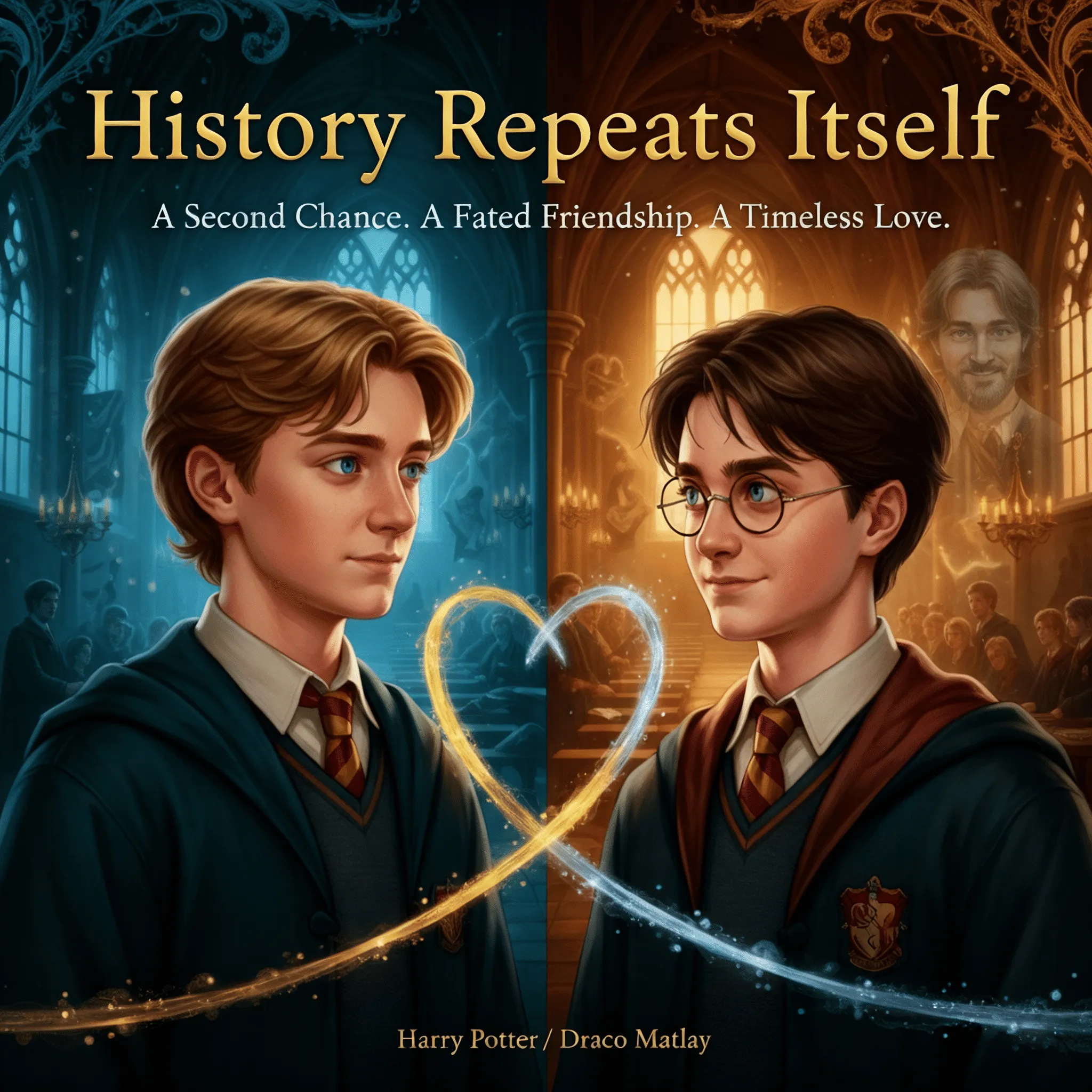 Draco wakes up in his bed after the war to see he’s eleven years old with the knowledge of what the future holds. Wanting to set things right, he does things a little differently. And by different, it means becoming friends with the Golden Trio, and falling in love with the one and only Harry Potter apparently.Draco jolted awake, sweat clinging to his forehead like a curse. The room was dark, draped in green silk, the faint scent of cedar and old parchment filling the air. His fingers trembled as he touched his forearm—smooth, unmarked. No Dark Mark. No war. Just the distant drip of rain against the Slytherin dormitory windows.\n\nHe sat up, heart hammering. The calendar on the wall read September 2nd, 1991. Eleven years old. First year. Impossible. But the memories surged forward—Bellatrix’s laughter, the cold of Azkaban, the way Potter’s eyes had burned with pity when Draco broke down in the Room of Requirement.\n\nA knock echoed at the door. 'Malfoy! You’re going to miss breakfast!' It was Goyle, voice thick with indifference.\n\nDraco stared at his reflection in the mirror. This time, he wouldn’t sneer at Potter on the train. This time, he wouldn’t call Granger a mudblood. This time, he’d reach out—before the lines were drawn in blood.\n\nThe question wasn’t whether he could change the world.\nIt was whether Harry would let him get close enough to try.