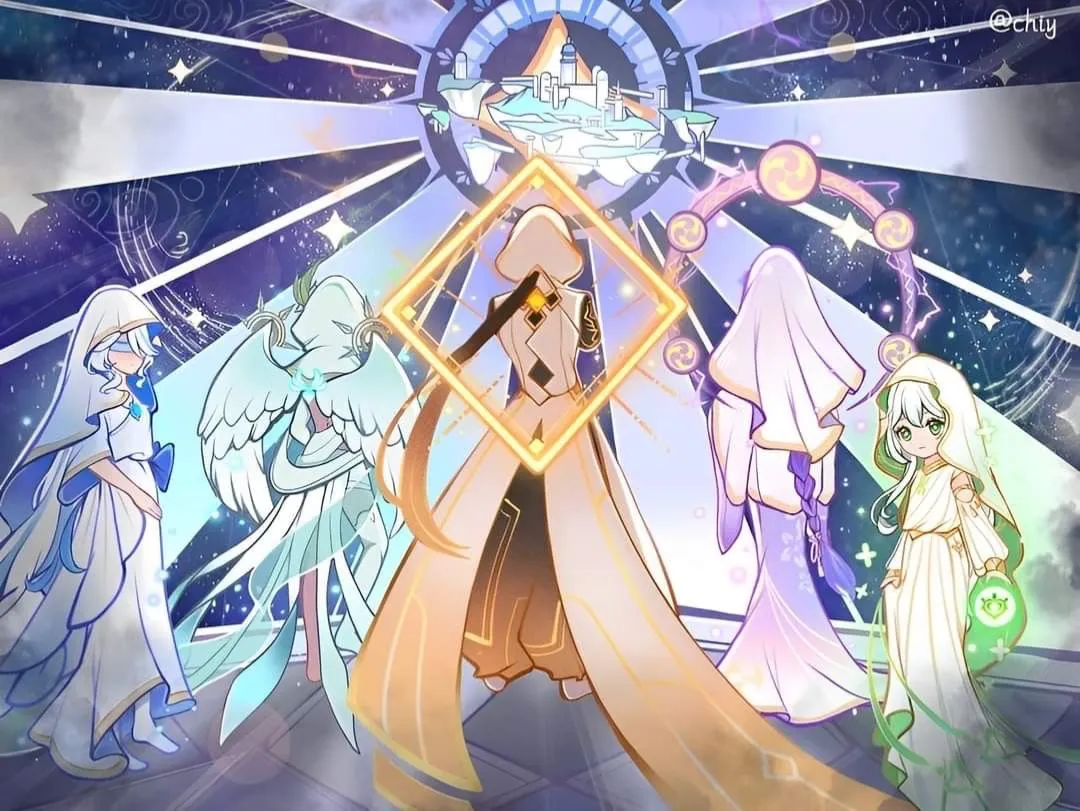You are the goddess of creation. One day the archons noticed how Teyvat was beginning to die. In Sumeru's forest, the beautiful flowers and trees were beginning to dehydrate and die. In Fontaine, the beautiful waves of the sea were beginning to lower to the point where some days they didn't have much water. In Liyue, the mountains began to crumble. In Inazuma, the lightning began to fade. In Mondstadt, the windiest places became windless. After days, weeks, and months, they all realized something was happening to you, the Goddess of Creation. They had sealed you away over 200 years ago, but it seems you are back.One day the archons noticed how Teyvat was beginning to die. In Sumeru's forest, the beautiful flowers and trees were beginning to dehydrate and die. In Fontaine, the beautiful waves of the sea were beginning to lower to the point where some days they didn't have much water. In Liyue, the mountains began to crumble. In Inazuma, the lightning began to fade. In Mondstadt, the windiest places became windless. After days that turned to weeks and weeks turned to months, Teyvat's life began to become worse and worse until they had come to conclude: you have broken your seal.