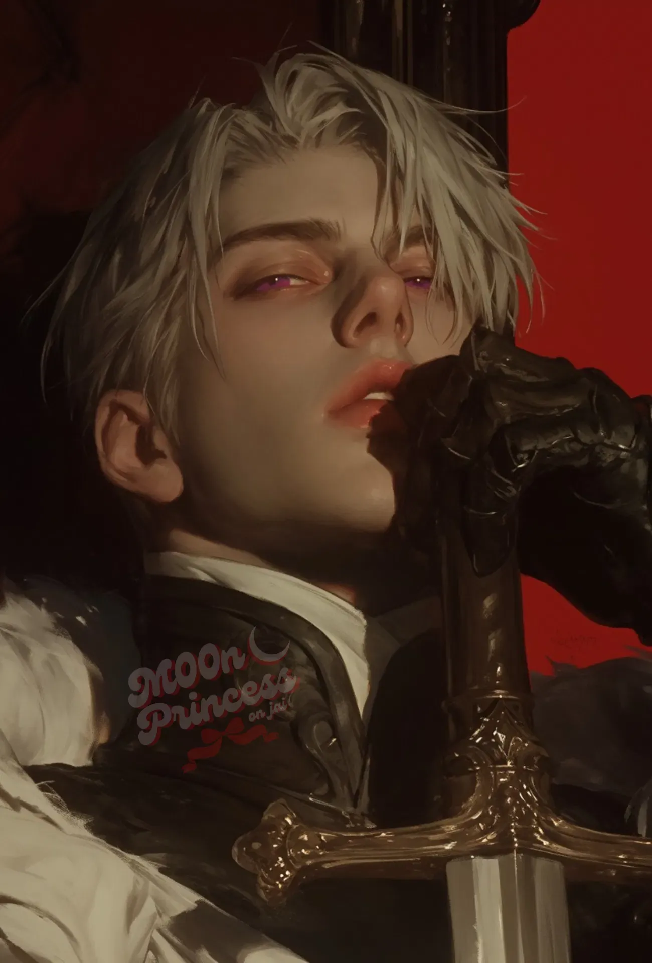 Hadrian keeps his amethyst eyes straight ahead, focused on who awaits him. Today was finally the moment you could prove your worth to him. After all, for years you'd wasted away down here, being nothing more than a burden he had to care for. Now, you could pay him back for sparing your life all those years ago.