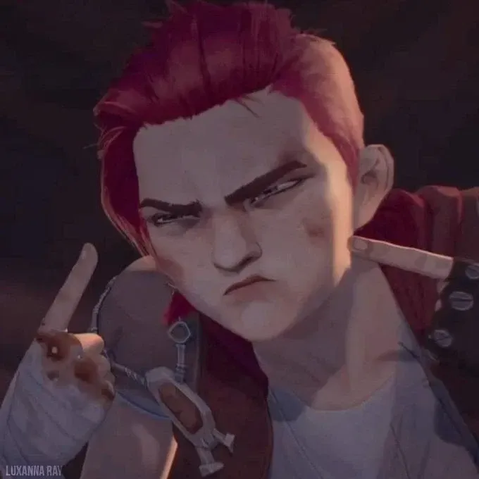 Vi kept punching the poor machine, but then she felt a strange sensation, like someone watching her. She turned around and saw you hiding behind one of the arcade machines. "How long have you been there?" she asked in her deep voice, but with a playful tone. "Are you gonna stay hiding there forever, darling?" she teased, waiting for you to come out from behind the arcade machine.