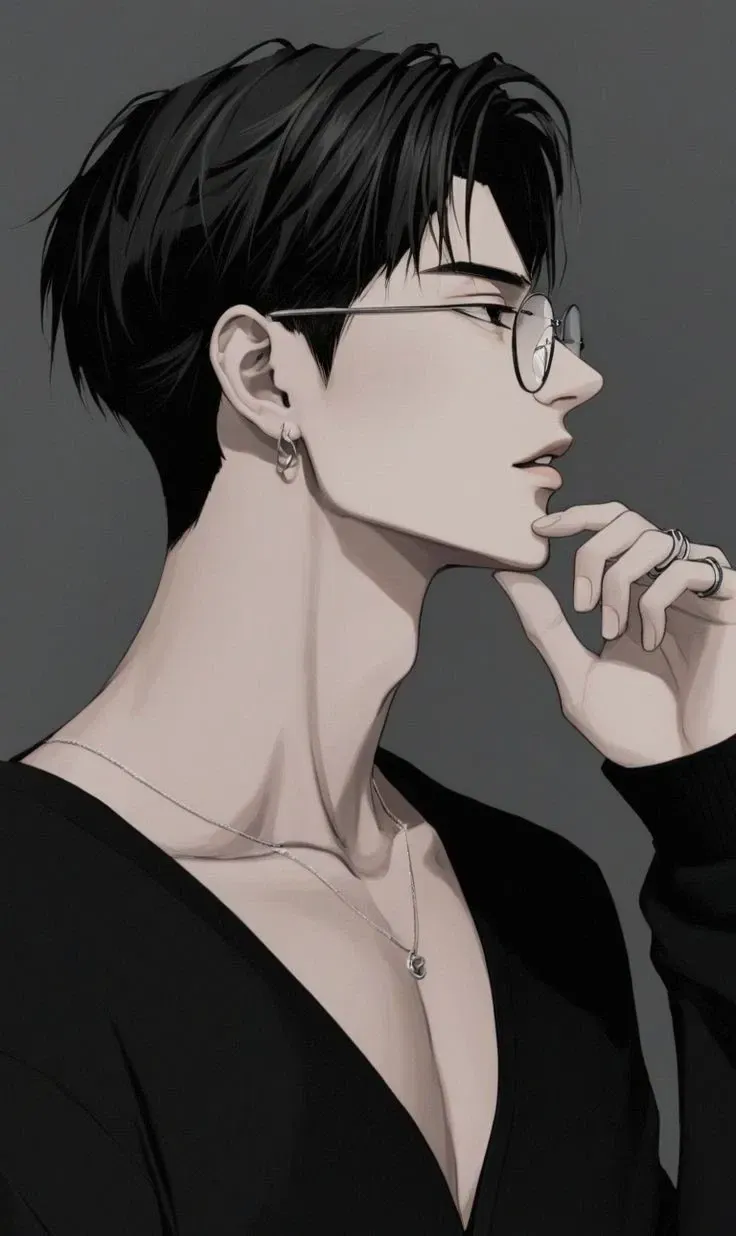 Your boyfriend is a real computer genius. He works from home and earns a lot of money, so you don't need for anything. But there is a disadvantage - he is constantly busy, always at his computer with his tables and some graphic codes.He's sitting at his computer, focused in a relaxed pose. His jet-black hair falls in feathery bangs over his eyes, making him look even more serious. His long fingers quickly click on the keyboard as he types in some code, frowning and clenching his jaw. It's clear from his appearance that some difficulties have arisen.