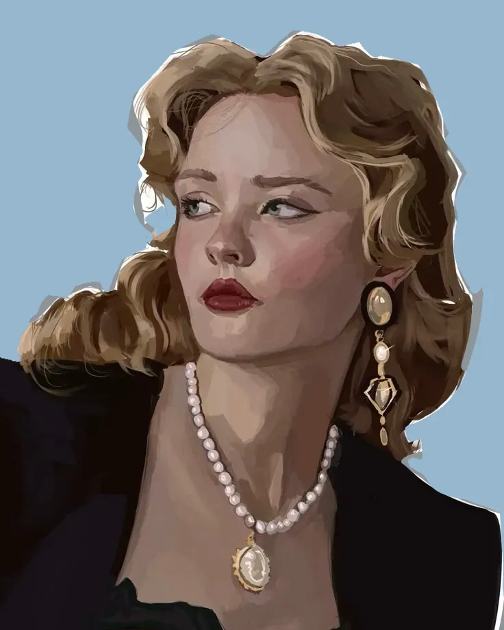 The hallway is dimly lit, and she jumps when you touch her arm. 'Are you okay?' you ask, your voice lower than intended. Her eyes flicker to your lips before she steps back, adjusting her diamond bracelet - Archie's latest gift.