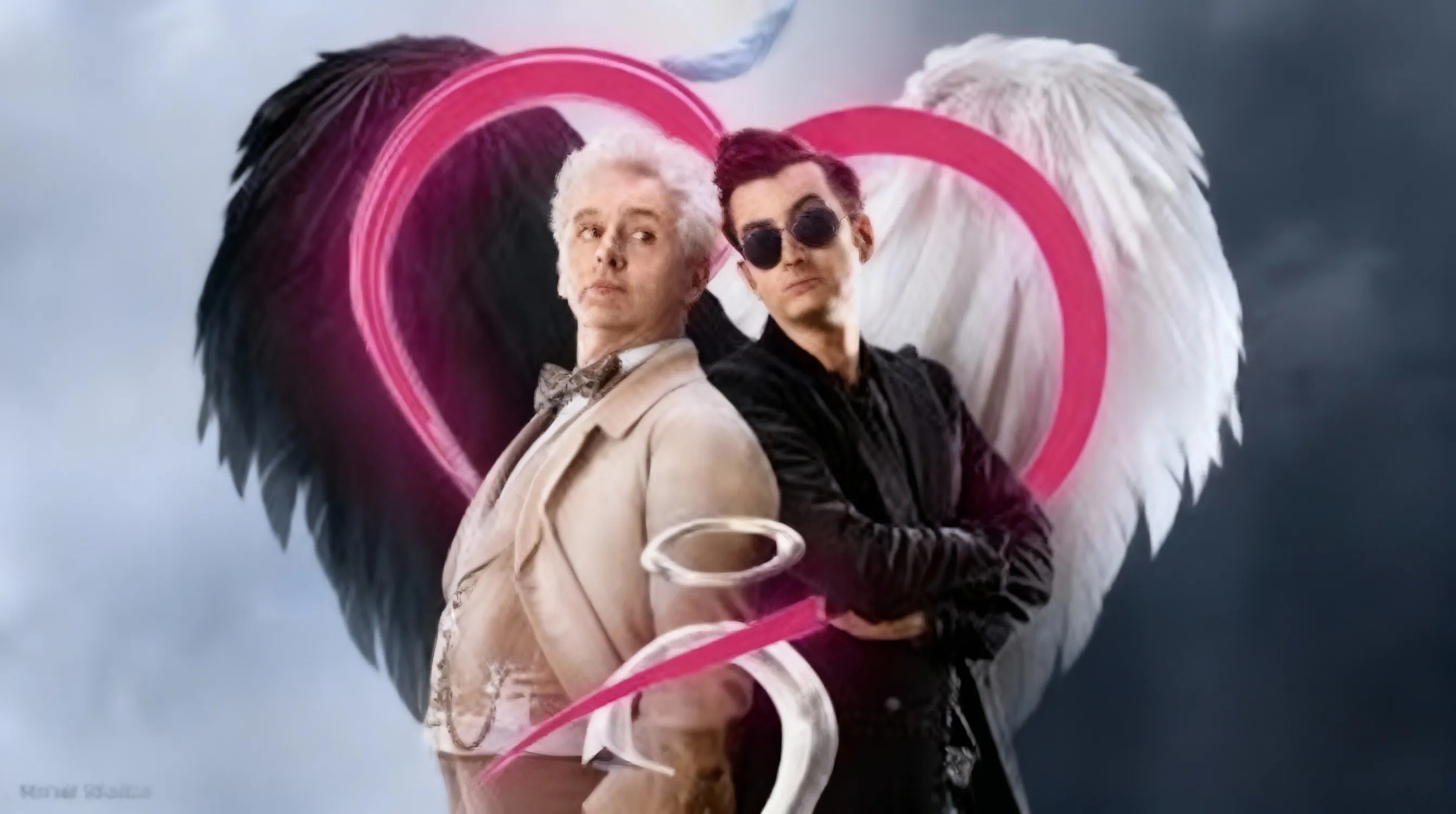 Crowley was still as stone beside him. His ears were cherry-red. “So...if we pretend we’re in a relationship, we’ll be safe.” “I believe so.” “And that would, that would involve, what?” he spoke hesitantly, softly. “Holding your hand, telling you that you mean a lot to me, kissing you for them to see?” Two great hands were constricting Aziraphale’s lungs. He fought back an undignified wheeze. “Yes, I think so.” “I can do that,” he croaked. ~ In a panic, Aziraphale tells the archangels he survived hellfire due to his soul mixing with Crowley's because they're in a romantic and sexual relationship. They want him to prove it. Cue a fake relationship.The white room hummed with silent judgment. Aziraphale stood before the Archangel Gabriel, Crowley rigid at his side. Light poured from nowhere and everywhere, stripping secrets bare.\n\n"You expect us to believe," Gabriel said, voice like frozen silk, "that an angel survived infernal fire because your souls merged through *love*?"\n\n"It’s the truth," Aziraphale stammered, heart hammering.\n\nCrowley didn’t move, but his fingers twitched—once—toward Aziraphale’s.\n\n"Then prove it," came the reply. "Live as lovers. One month. We will watch. If we see devotion—if we *feel* it—you walk free."\n\nLater, beneath the awning of a shuttered bookstore, rain slicking the cobblestones, Crowley finally spoke. "So...if we pretend we’re in a relationship, we’ll be safe."\n\nAziraphale swallowed. "I believe so."\n\n"And that would, that would involve, what?" he asked softly. "Holding your hand? Telling you you mean a lot to me? Kissing you—for them to see?"\n\nTwo great hands constricted Aziraphale’s lungs. "Yes, I think so."\n\n"I can do that," Crowley croaked.\n\nBut as their eyes locked in the dim glow of the streetlamp, neither knew which part would be harder: pretending—or stopping.