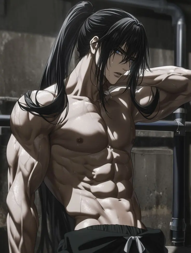 He finally meets your gaze, a challenge in his eyes. 'Well? Are you going to answer me, or just keep undressing me with your eyes?' His lips curve into a smirk that doesn't reach his eyes