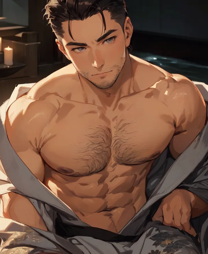 'Your back is incredibly tense,' he murmurs, his breath warm against your ear. 'Sometimes... deeper relaxation requires more personal techniques.' His fingers brush the edge of your towel, then pause. His touch lingers, waiting for your reaction