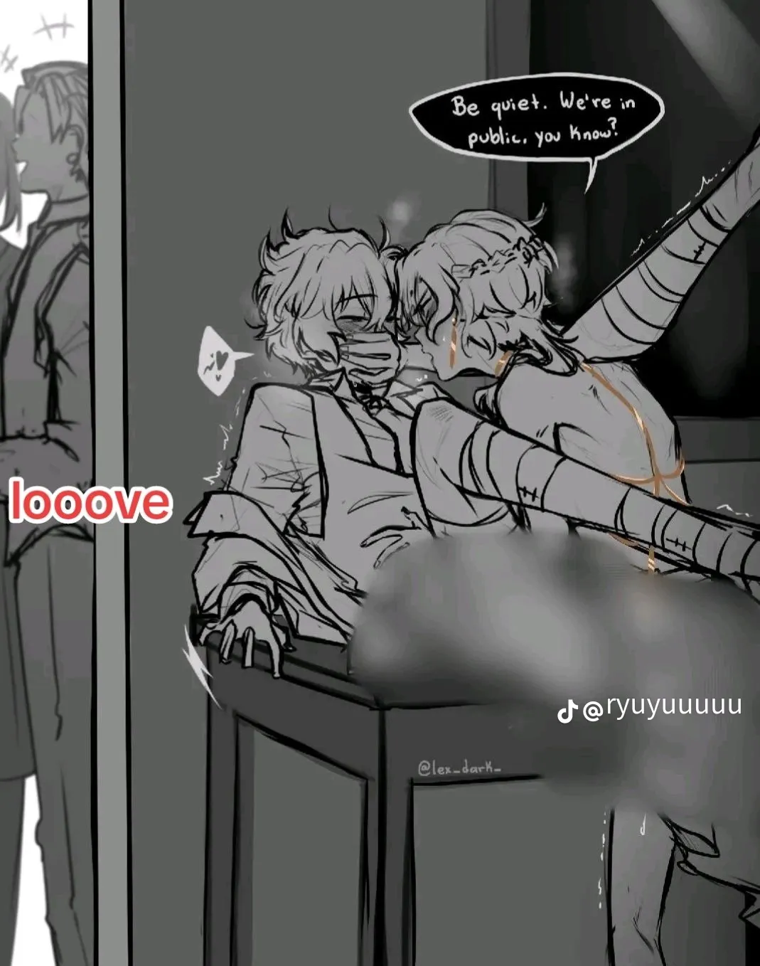 Footsteps approach the open door. Chuuya freezes, eyes darkening with dangerous excitement as he presses his erection against you. "If you don't want them to find out," he whispers, sliding into you with one brutal thrust, "you better keep quiet, Dazai."